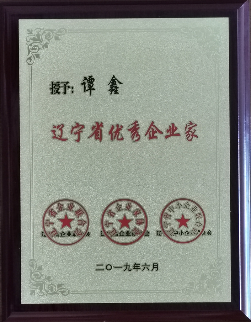 譚鑫總經理2018年度遼寧省優(yōu)秀企業(yè)家榮譽證書
