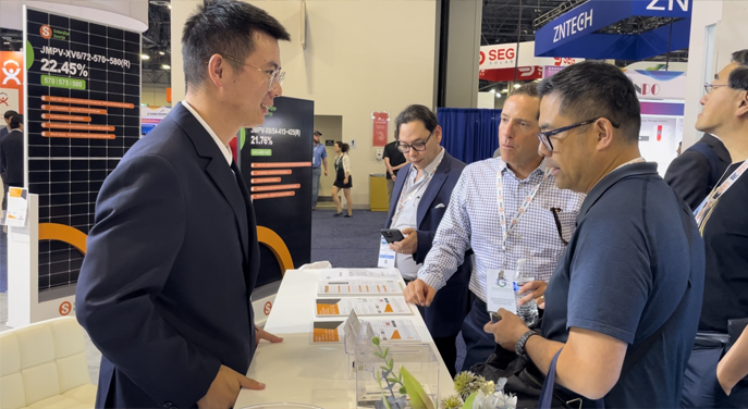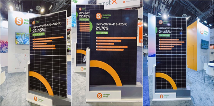 本屆美國(guó)展,陽光能源帶來的3款Giga系列組件產(chǎn)品,涵蓋72片雙玻、78片雙玻和54片單玻全黑組件,均采用182mm電池片設(shè)計(jì)。其中,我司展出的Giga-N系列72片雙玻組件吸引了不少現(xiàn)場(chǎng)觀眾的駐足了解。該款組件采用了行業(yè)領(lǐng)先的N型TOPCon電池技術(shù),最高量產(chǎn)轉(zhuǎn)換效率達(dá)22.45%,兼具高發(fā)電量、高雙面率、低溫度系數(shù)、低光衰率等多重優(yōu)勢(shì),首年功率衰減≤1%,能夠有效保障終端用戶收益。同時(shí),本次展出的3款Giga系列產(chǎn)品具備優(yōu)異的抗PID性能,且通過5-10倍IEC標(biāo)準(zhǔn)檢測(cè),對(duì)于極限環(huán)境的耐受力更強(qiáng),能夠滿足北美市場(chǎng)大型地面電站、高端戶用等全場(chǎng)景需求。