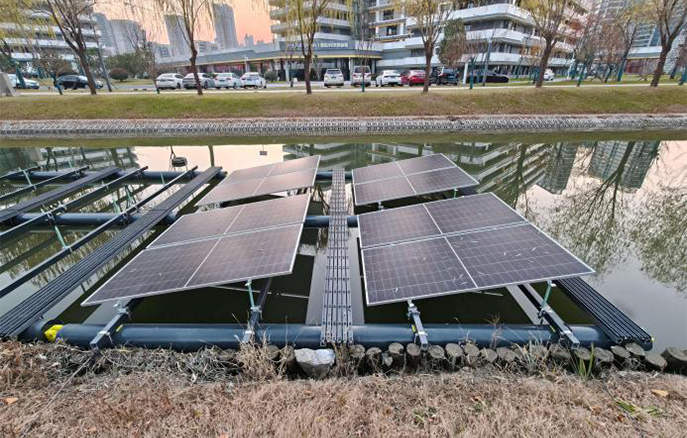鹽城西伏河防眩光漂浮式光伏電站采用了先進的漂浮式光伏系統(tǒng)設(shè)計,其核心在于精密的錨固系統(tǒng),該系統(tǒng)如同水下根系,有效抵御風浪沖擊,確保光伏陣列的穩(wěn)固性。這一技術(shù)突破不僅釋放了水域空間的巨大能源潛能,更標志著“向水要電”新時代的開啟。
