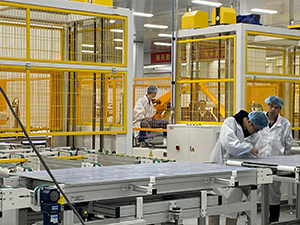 公司擁有行業(yè)領(lǐng)先的自動化標(biāo)準(zhǔn)及先進(jìn)的智能化生產(chǎn)線,在線操作工大量減少,工人勞動強度降低80%以上。核心自動化設(shè)備有自動串焊機、機器人排版機、匯流條焊接機、全自動層壓機、自動裝框系統(tǒng)、自動灌膠系統(tǒng)、EL雙面外觀一體機、接線盒自動焊接機、分類下料機械手,整線節(jié)拍25秒,單線產(chǎn)能300MW/年。生產(chǎn)過程信息實時化控制,通過實時監(jiān)控運營現(xiàn)場的實際情況,進(jìn)行及時的反應(yīng)。根據(jù)MES等系統(tǒng)采集的實時數(shù)據(jù),及時統(tǒng)計、分析,快速的對生產(chǎn)、設(shè)備、質(zhì)量、倉庫、人員等業(yè)務(wù)進(jìn)行統(tǒng)籌分析,并對運營情況進(jìn)行跟蹤處理。生產(chǎn)設(shè)備全部國產(chǎn)化,全國組件生產(chǎn)的一流高端生產(chǎn)線。