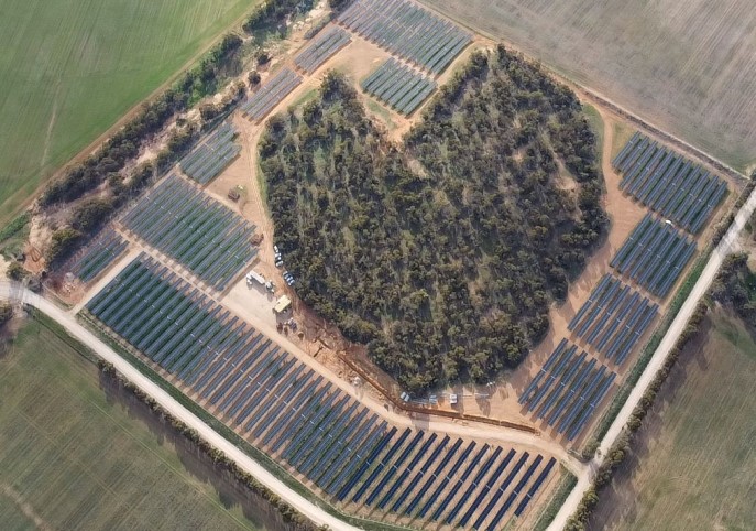 澳大利亞默裏河沿岸的一個(gè)小鎮(zhèn)上,從高空俯視下去,能看到一片愛(ài)心形狀的植被。最近,陽(yáng)光能源的組件抵達(dá)了這個(gè)小鎮(zhèn),並與這一片原始森林來(lái)了一場(chǎng)“愛(ài)”的邂逅。