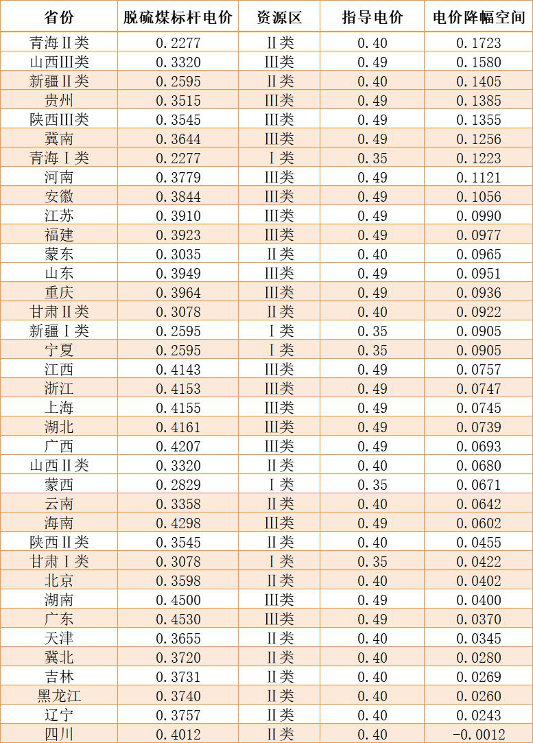 從電價(jià)降幅空間來(lái)看,青海、新疆二類、山西三類、貴州、陝西、冀南、河南、安徽等地降價(jià)幅度均可超過(guò)0.1元/千瓦時(shí),相對(duì)競(jìng)價(jià)優(yōu)勢(shì)更為明顯一些。但以四川、冀北、湖南、廣東以及東三省為代表的地區(qū),電價(jià)降幅空間僅有2-3分/千瓦時(shí)左右。具體數(shù)據(jù)見下表: